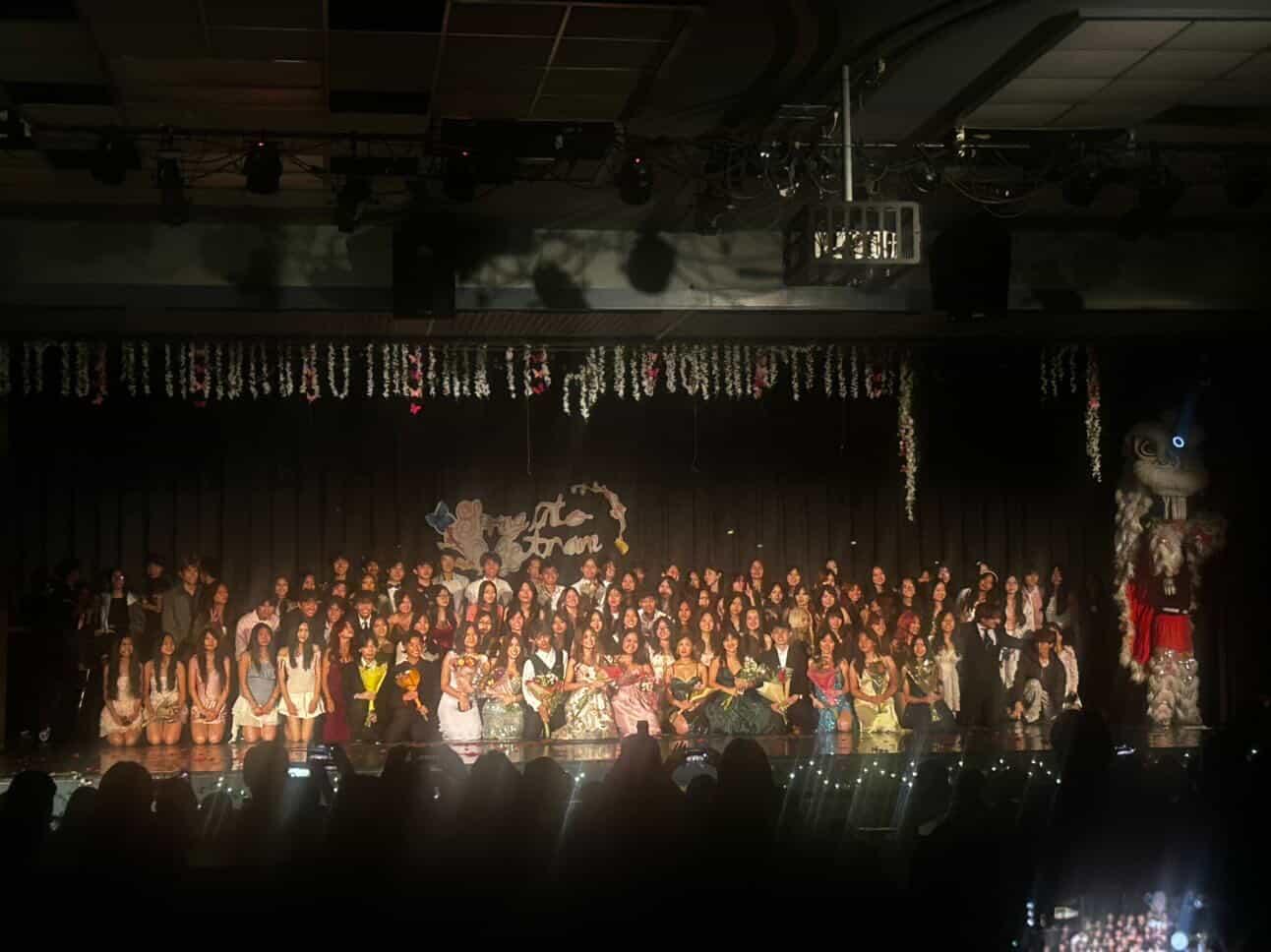 The club decorated the stage with delicate flowers hanging from above and twinkling fairy lights and vines lining the bottom of the stage. The show also featured a wide variety of acts, including Vietnamese fashion shows, dances, singing, and acts from outside schools.